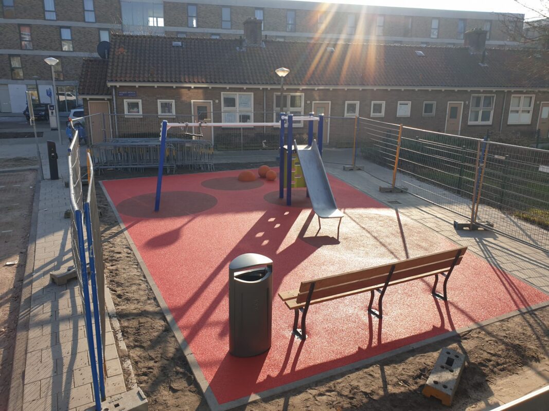 De kinderen uit de Descartesbuurt Amsterdam kunnen weer fijn spelen. Nog een spijlen hekwerk erom heen en het is volledig veilig.